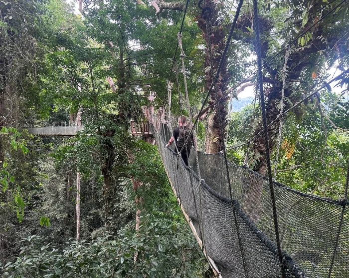 Deretter blir du hentet på hotellet ditt og kjørt en kort tur til den UNESCO-utnevnte Kinabalu nasjonalpark, som lokker med sin frodige botaniske hage, varme kilder og eventyr oppe i tretoppene.
