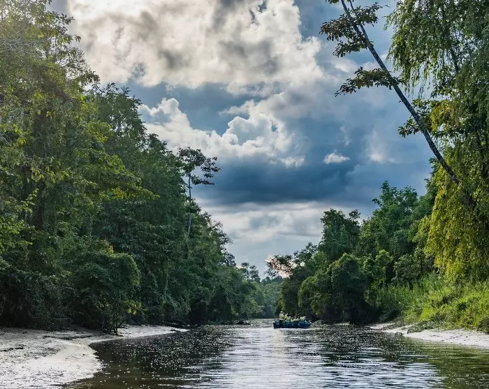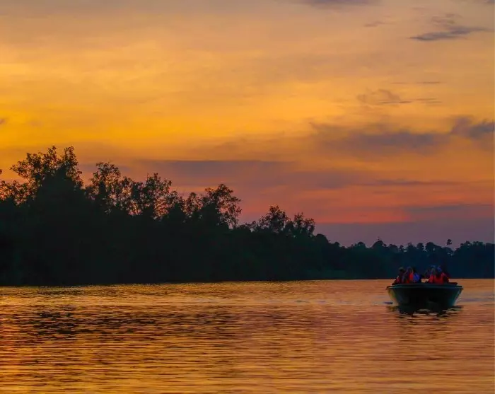 Senere på ettermiddagen blir du invitert med på enda en båttur før dagen går mot natt. Mens båten tøffer av sted forteller guiden om regnskogen og hjelper deg å oppdage floraen og faunaen som omgir deg. Du kan igjen være så heldig å oppleve regnskogens unike dyreliv når saltvannskrokodillen viser seg i vannet eller sølvlanguren svinger seg fra gren til gren i tretoppene.