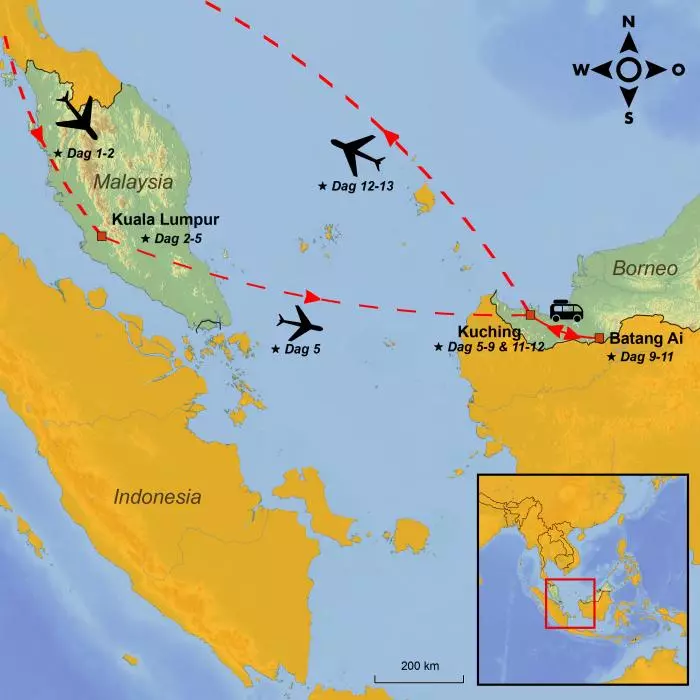 Du starter reisen din i Malaysias sjarmerende hovedstad Kuala Lumpur og fortsetter deretter til den malaysiske delstaten Sarawak på Borneo. Her venter uforglemmelige opplevelser, og du vil få en dypere kulturell forståelse for denne fascinerende delen av verden.