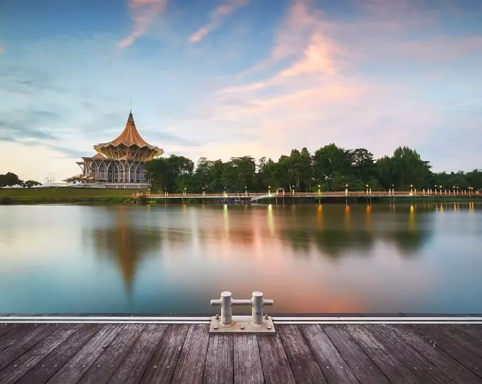 Kuching er vakkert beliggende ved Sarawak-elven og har en nesten kilometerlang promenade der du kan følge med på folkelivet og sjekke ut de mange butikkene og restaurantene. Om kvelden er det perfekt å finne seg til rette ved en av de mange spisestedene i den gamle bykjernen, som byr på alt fra internasjonale favoritter til lokale spesialiteter som den smakfulle laksa-suppen og nudelretten kolo mee. Etterpå kan du rusle langs promenaden og la deg fascinere av Kuchings vann- og lysshow, som utfolder seg hver kveld rundt klokken 20 foran Sarawaks regjeringsbygning.