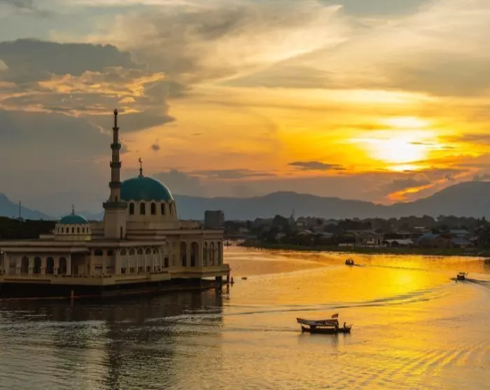 Guiden din tar deg først med til de livlige gatene i Chinatown, der du kan la deg friste av de innbydende duftene fra det store utvalget sjarmerende restauranter og besøke det fargerike tempelet Tua Pek Kong. En av byens store severdigheter er den gyldne kuppelformede bymoskeen. Den er et symbol på Kuchings religiøse mangfold. Deretter fortsetter du til Little India, som byr på sanselige opplevelser med sine fargerike hus fylt med tekstilbutikker og krydderhandlere.