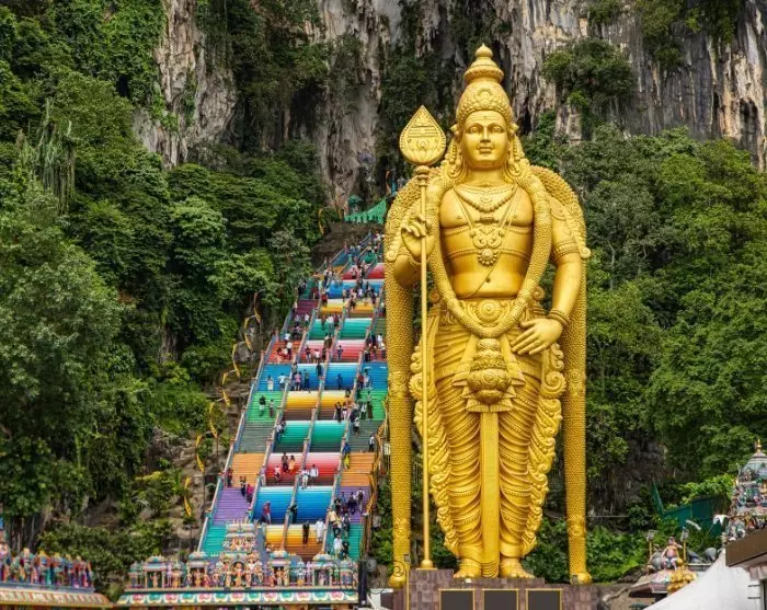 Du kan også trykke på pauseknappen og nyte livet i Kuala Lumpurs grønne oase, den botaniske hagen Perdana. Her kan du tilbringe en stille stund blant mange duftende blomster og et imponerende fugleliv. En annen stor naturopplevelse kan du få ved Batu Caves, litt utenfor sentrum. Her finner du en enorm kalksteinsgrotte prydet med fargerike hinduistiske templer, godt bevoktet av den gigantiske Lord Murugan-statuen. Å bestige de mange regnbuefargede trappene mot toppen, mens du langsomt føler historiens vingesus og grottens kjølige luft, er en opplevelse som vil bli til et flott minne.