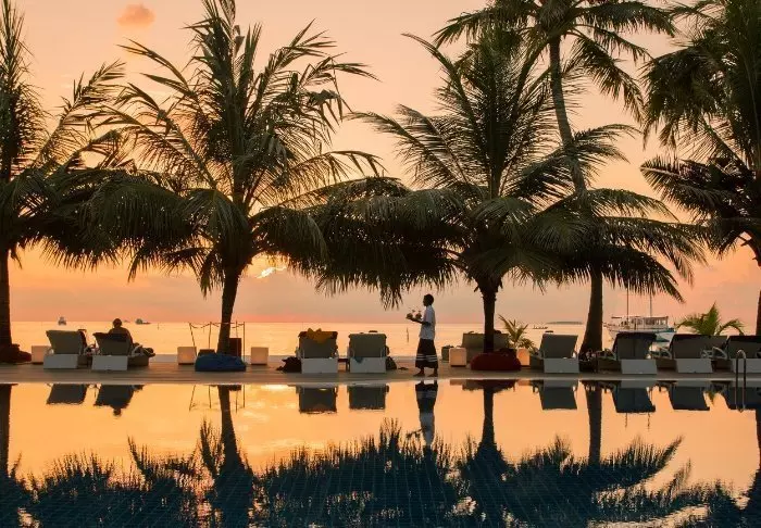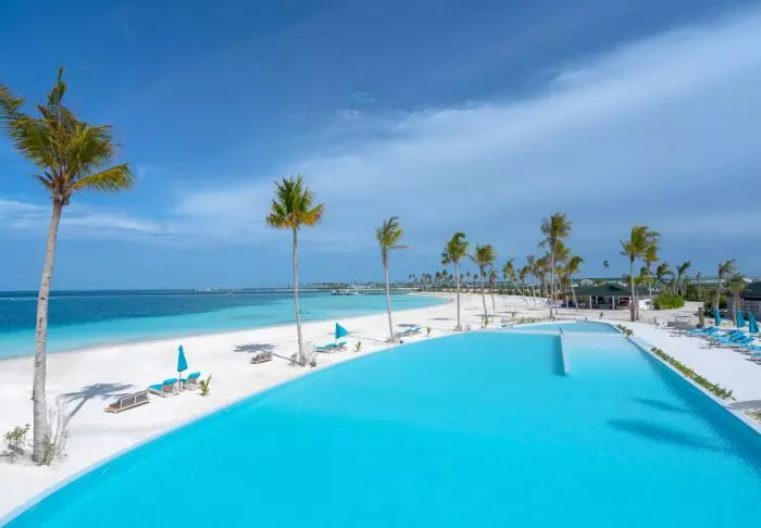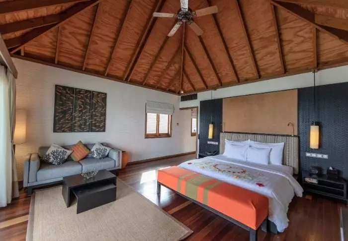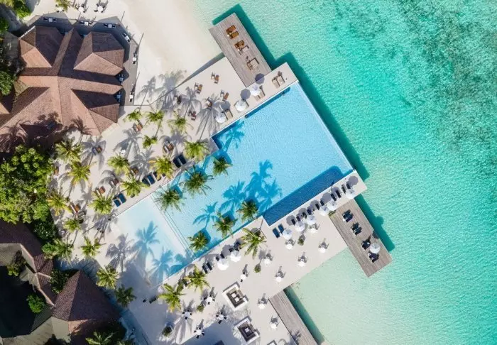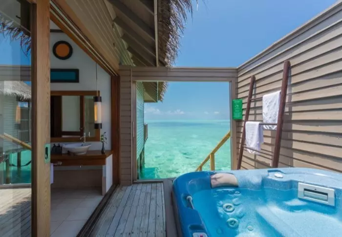 Bryggen flyter over det turkise, klare vannet, og personalet står klare til å ønske deg velkommen. Du stikker tærne i den kritthvite sanden og tilbys en velkomstdrink mens personalet tar seg av innsjekkingen. Deretter blir du vist til villaen din.