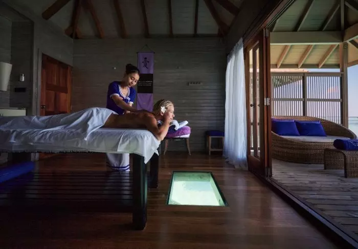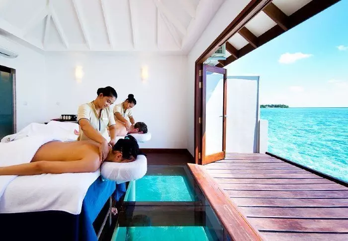 Etter en dag i solen må du ikke gå glipp av et velgjørende besøk i Firuma Spa, som står på påler ute i vannet. Her kan du nyde en deilig massasje mens du titter ned gjennom glasset i gulvet – kanskje svømmer Nemo forbi. Du kan også ta en tur i dampbadet, prøve forskjellige ansiktsbehandlinger eller få hånd- og fotpleie. Så er du klar til enda en dag i solen.