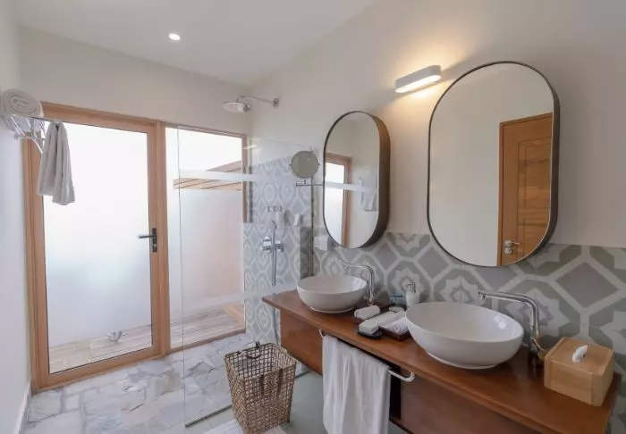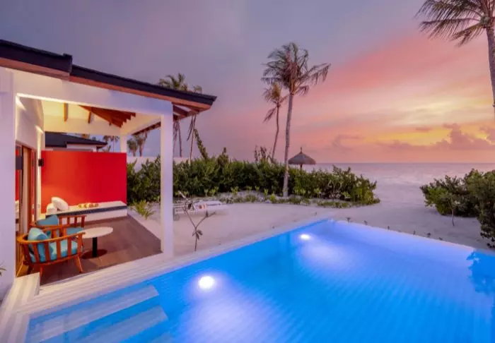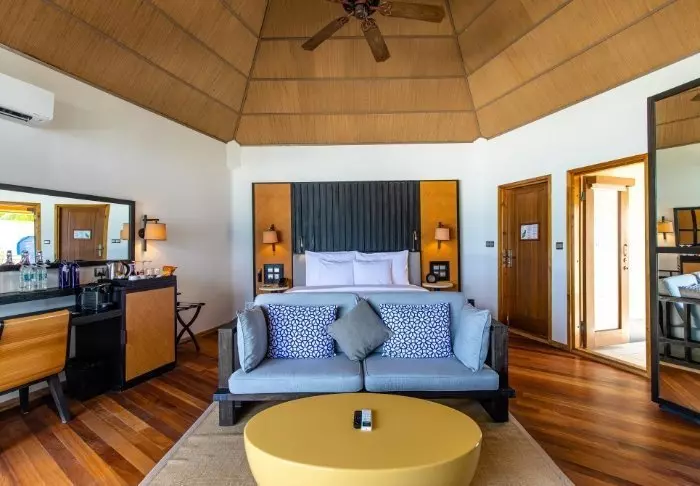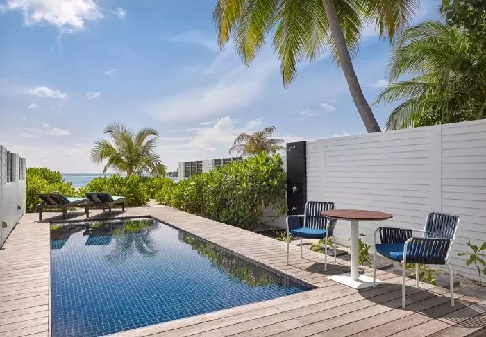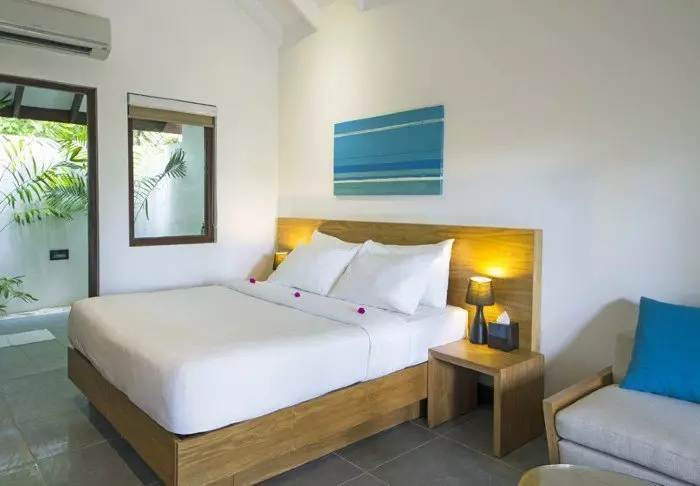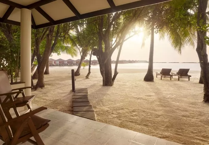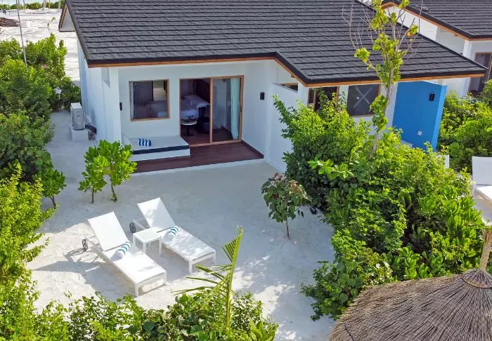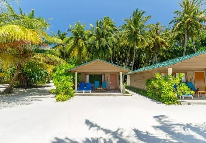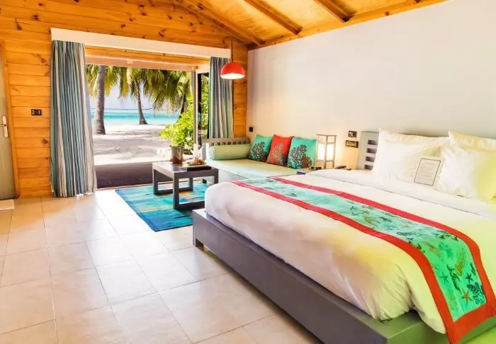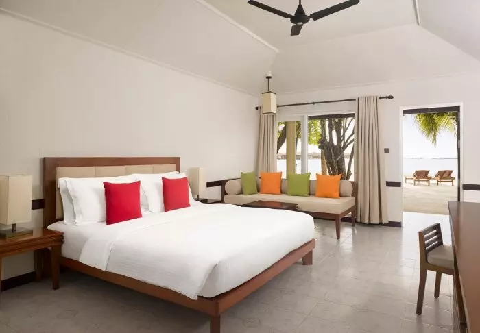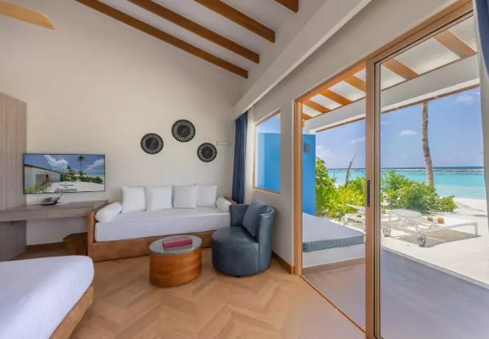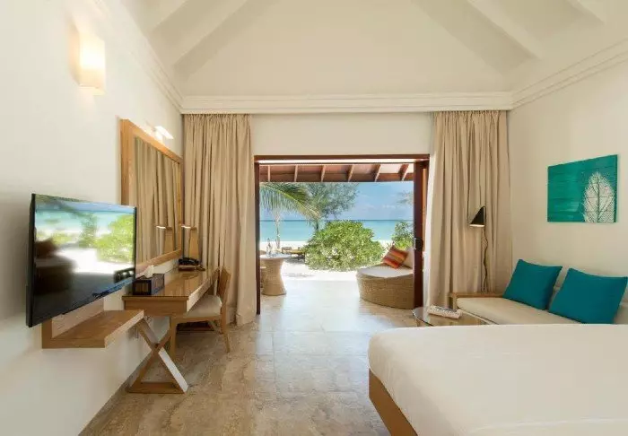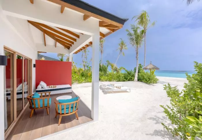 Beach-villaene er på 50 m2 og har plass til enten 2 voksne og 1 barn eller 3 voksne. Alle villaene ligger på østsiden av øya, noe som gir deg mulighet til å våkne opp til den vakre soloppgangen. Rommene er innredet i friske fargetoner som harmonerer godt med omgivelsene på Maldivene. Det tilhørende badet har “open-air”-badefasiliteter. Kanskje det aller beste er at villaen ligger med direkte adgang til den kritthvite sandstranden.