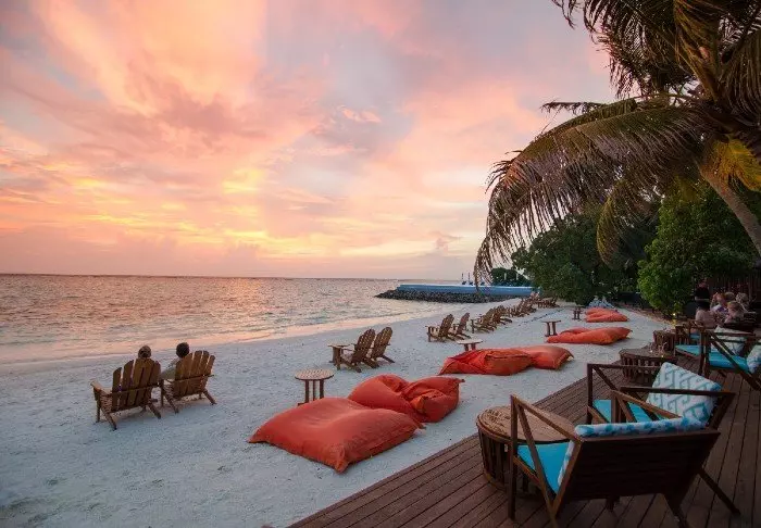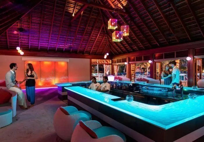 Om kvelden, når solen går stille ned, kan du nyte noe godt å drikke i en av øyas loungebarer, som tilbyr en avslappet atmosfære med utsikt over stranden.