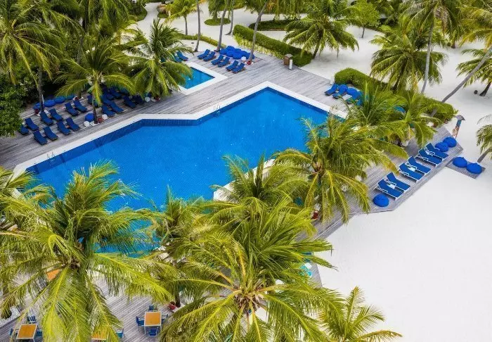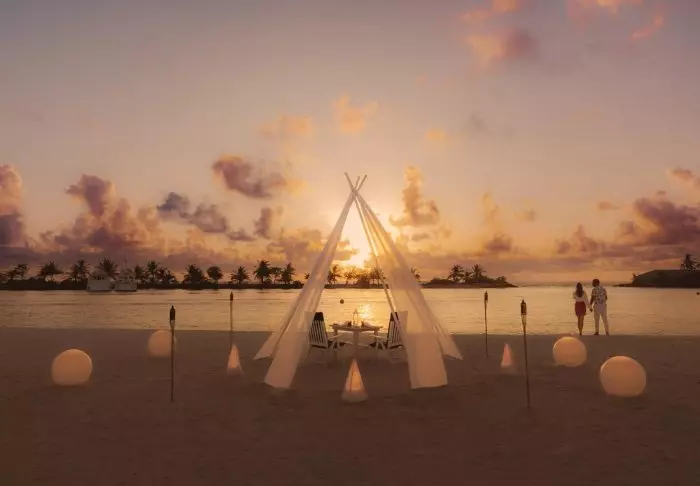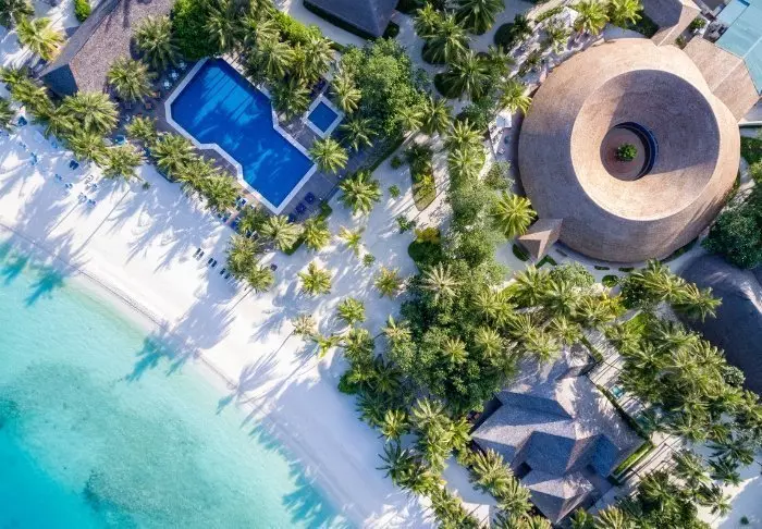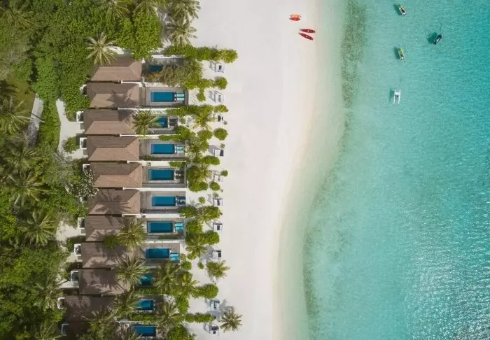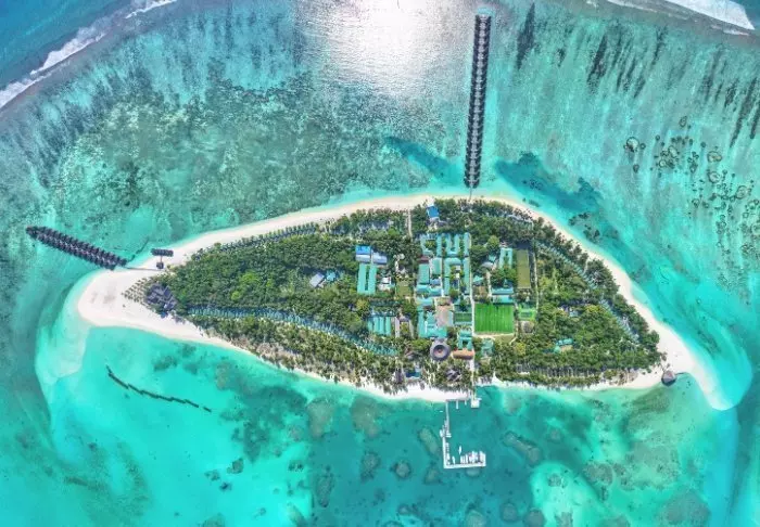 Denne luksuriøse øya er formet som en sommerfugl og ligger ca. 40 minutter fra Malé i speedbåt.