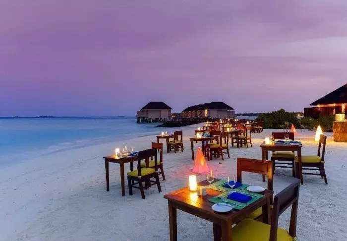 Om kvelden kan du nyte solnedgangen med en drink fra baren Hulgangu, før det er tid til å innta middagen i en av resortens mange restauranter. Her kan du få alt fra maldivisk hummer til japanske teppanyaki-retter. Det er også mulighet for ”in villa dining”, hvis du ønsker å spise i villaen din.