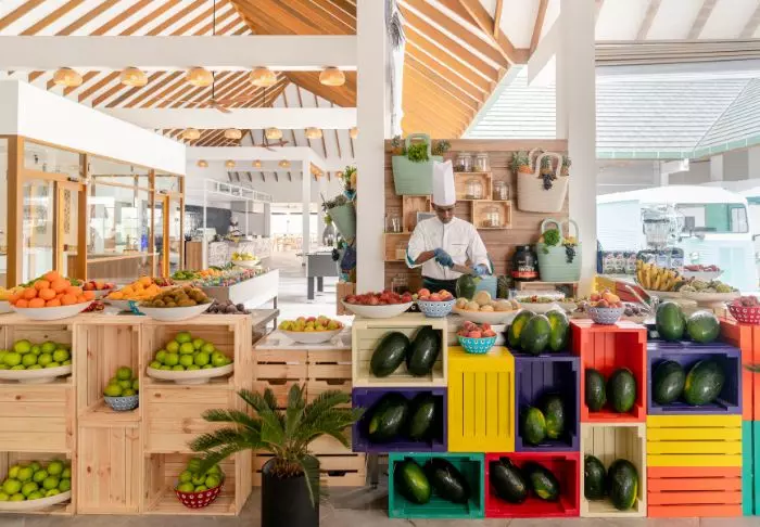 På Meeru kan du også se frem til kulinariske opplevelser på feriestedets seks restauranter, som serverer alt fra sjømat og asiatiske spesialiteter til middelhavsmat og deilige grillretter. Du vil sjelden oppleve et så stort utvalg og så smakfulle retter, og urtene, grønnsakene og frukten kommer fra Meerus egen hage.