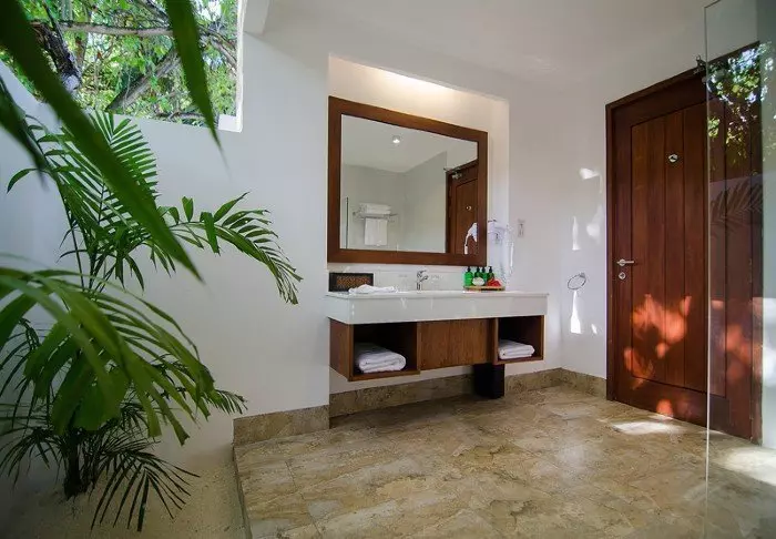 Beach-villaen er på 54 m2 og har plass til enten 2 voksne og 2 barn eller 3 voksne. Villaen er lys og romslig, innredet med tradisjonelle tremøbler og har tekstiler med fine farger. Alle villaene har aircondition, takvifte, Wi-Fi, minibar, TV, telefon og elektrisk kjele til te og kaffe samt toalett-/skrivebord. Det er både innendørs og utendørs bad med henholdsvis badekar og ”open air” -dusj. Villaen har egen veranda med stoler og liggestoler, og herfra er det direkte adgang til den kritthvite sandstranden.