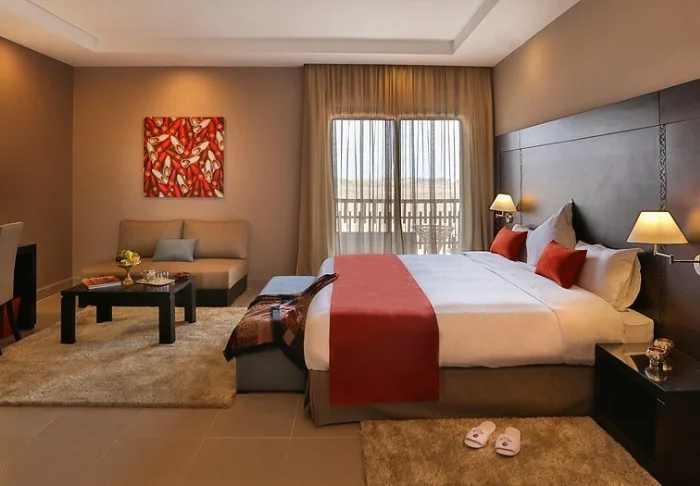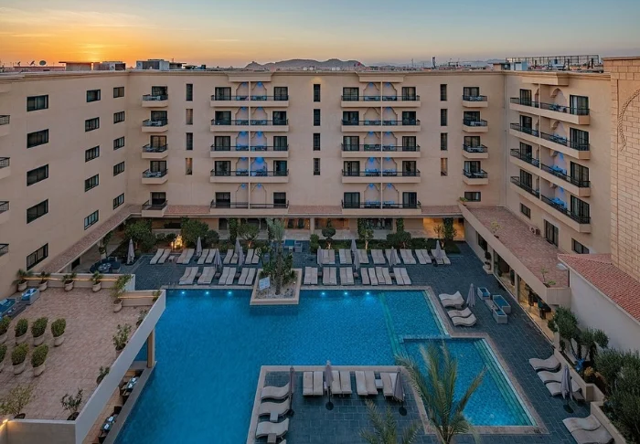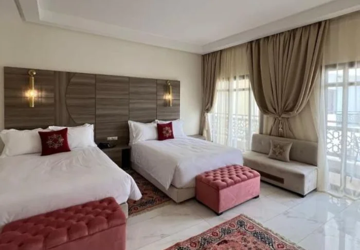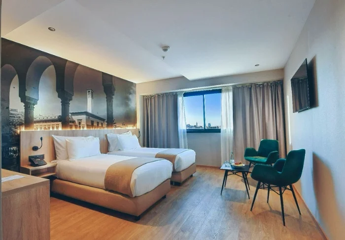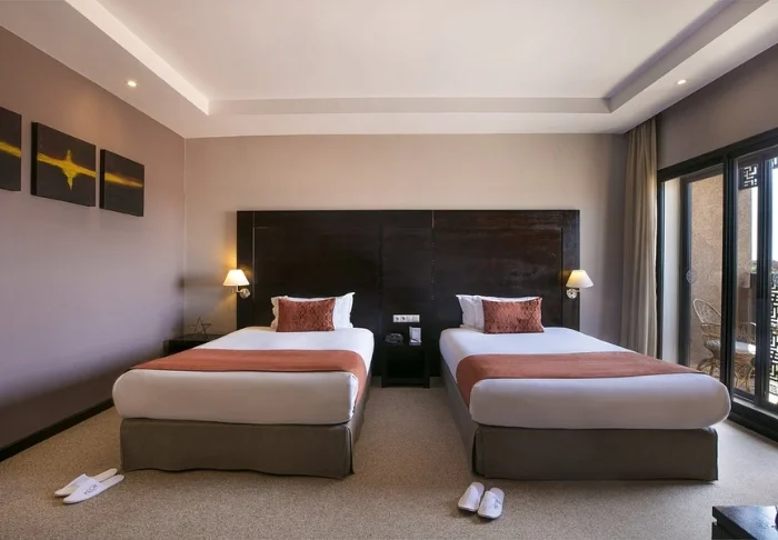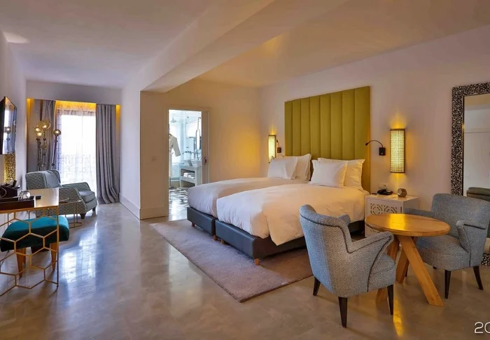 Hotellet har 134 rom, alle innredet i en varm og moderne stil med diskrete marokkanske detaljer. Alle rom har aircondition, minibar, TV og gratis Wi-Fi.
