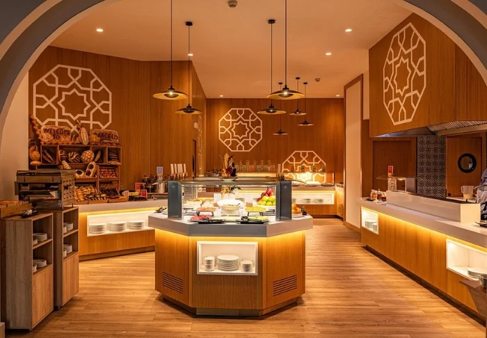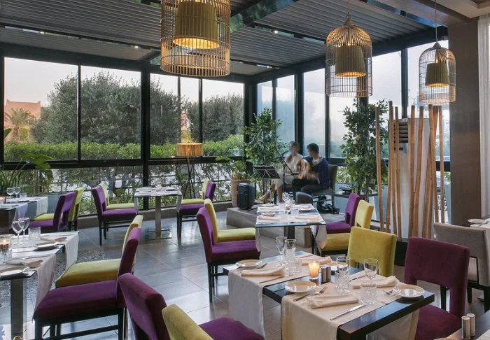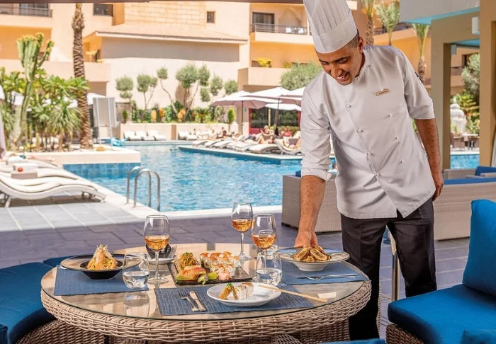På hotellets restaurant møtes marokkanske tradisjoner og internasjonale smaker – ofte med “live cooking” eller tapas.