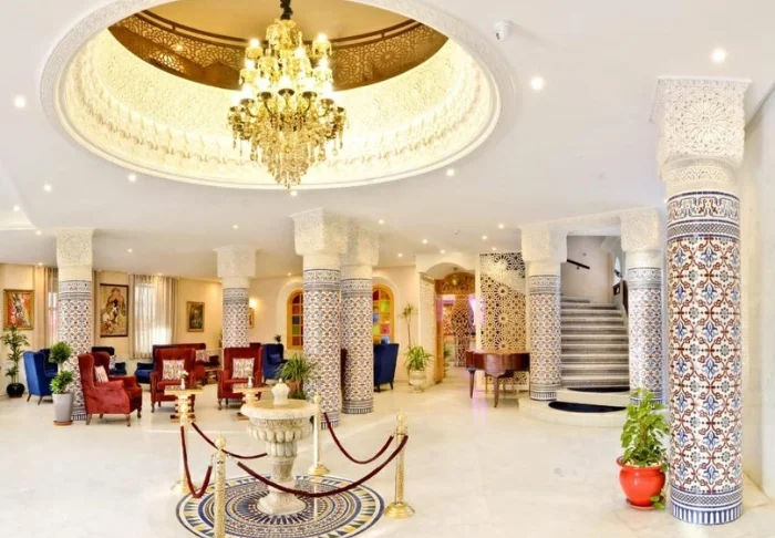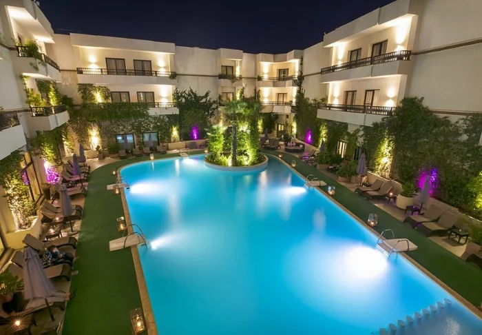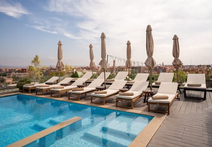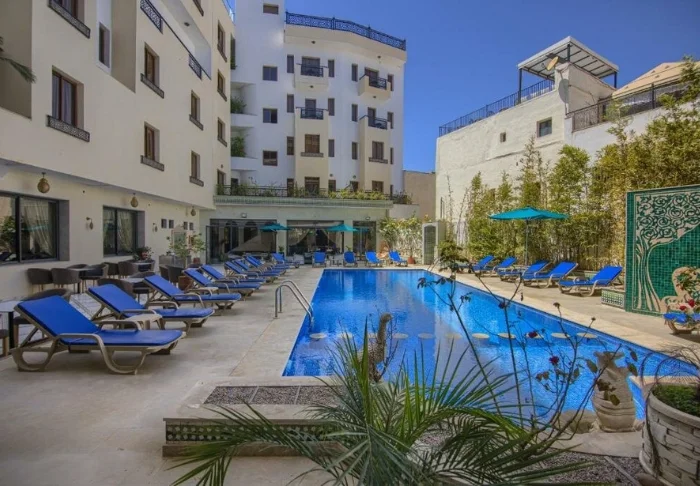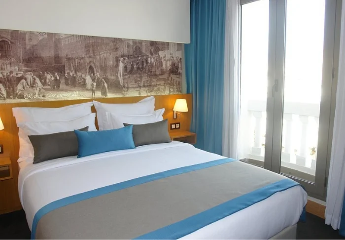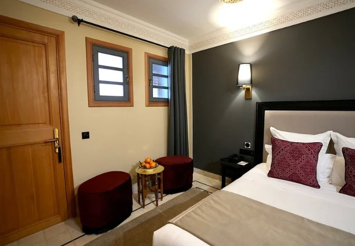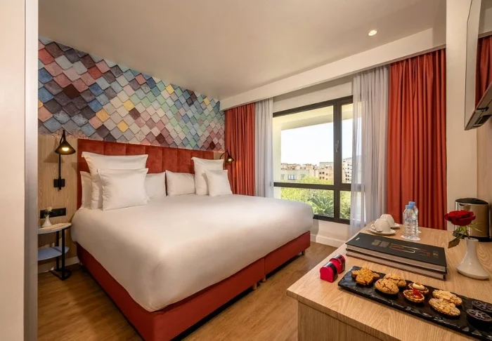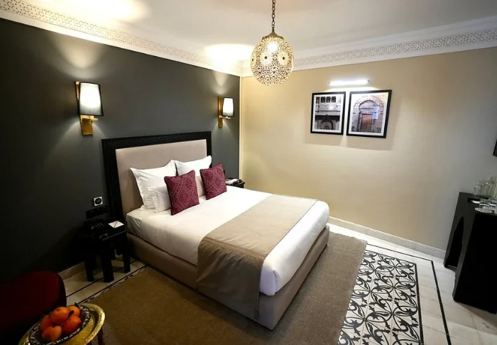 Her finner du 85 rom innredet i art deco-stil med en herlig marokkansk vri. Alle rommene har aircondition, minibar, flatskjerm-TV og gratis Wi-Fi. Som noe litt spesielt i Marrakech, har alle rom egen balkong. Hotellet har en utsøkt fiskerestaurant i første etasje, og på den elegante takterrassen serveres spansk-inspirerte tapas og fristende cocktails.
