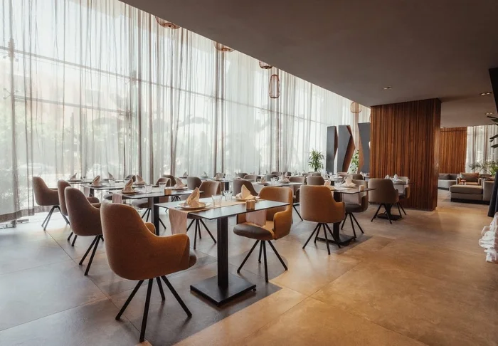 Hotellets restaurant serverer både frokost, lunsj og middag – i tillegg finnes en bar og et caféområde der du kan unne deg en drink eller en lett snack i avslappet stemning.