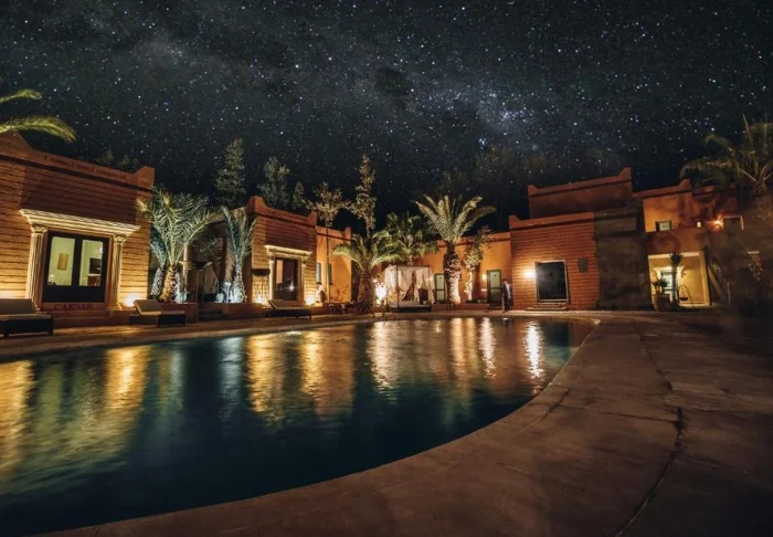 Midt i ørkenens stillhet og i skyggen av Saharas gyldne sanddyner ligger Imperial Glory Lodges.