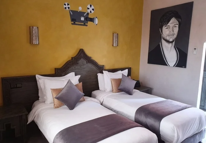 Hotellet ligger rett ved siden av Marokkos svar på Hollywood, Atlas Studios, og har atmosfære som et filmsett. Plakater og rekvisitter pryder både rommene og fellesområdene, og de største suitene har hentet inspirasjon fra noen av filmene som delvis er spilt inn i studioene rett ved hotellet.