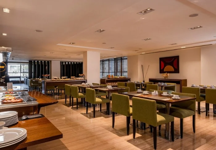 Frokost serveres i hotellets restaurant, hvor du også kan nyte lunsj og middag med både internasjonale og lokale retter. Rett i nærheten ligger dessuten et velassortert kjøpesenter med butikker og kafeer – perfekt for en liten pause mellom sightseeing og avslapping.