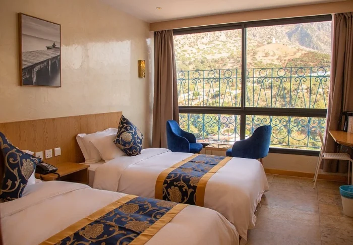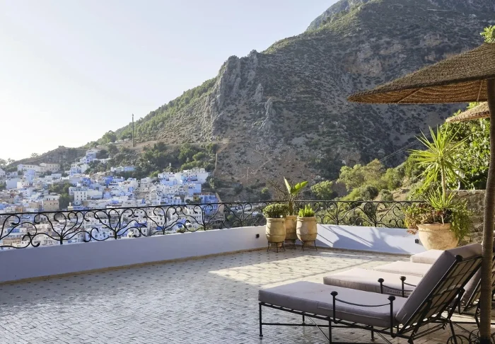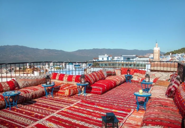 Dar Echchaouen Maison d’Hôtes & Riad ligger i rolige omgivelser, bare noen minutters gange fra medinaens blå gater. Det er verdt å merke seg at det er mange trapper opp til hotellet, så det egner seg ikke for personer med redusert mobilitet. Når du først har kommet opp hit, kan du nyte den koselige gårdsplassen og den store terrassen som innbyr til gode stunder med avslapning. Ved bassenget kan du slappe av i solen og la blikket hvile på de frodige fjellsidene.