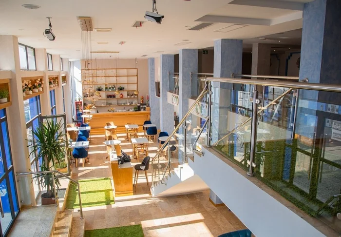 Hotellets basseng ligger på takterrassen, hvor du også finner både bar og restaurant. Vær oppmerksom på at takterrassen kun er åpen om sommeren (fra juli til oktober). I forlengelsen av lobbyen finner du i tillegg en restaurant, en bar og en liten kiosk med snacks og drikkevarer.