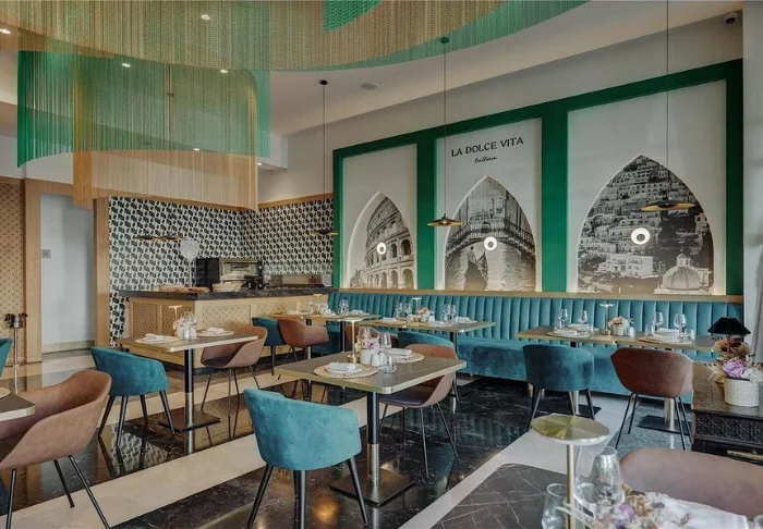 Hotellet har én restaurant, to kombinerte bar-restaurantkonsepter og tilbyr både massasje og hammam.