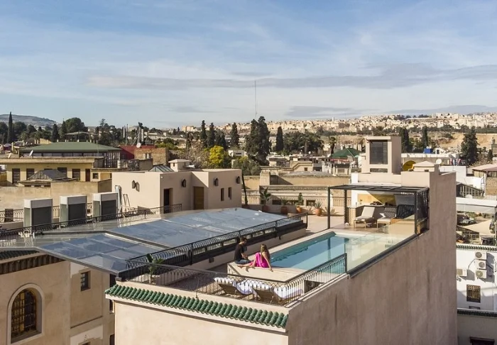 Rett utenfor medinaen i den historiske byen Fès finner du Fes Heritage Boutique Luxury Hotel, hvor moderne komfort møter den sjarmerende marokkanske atmosfæren.