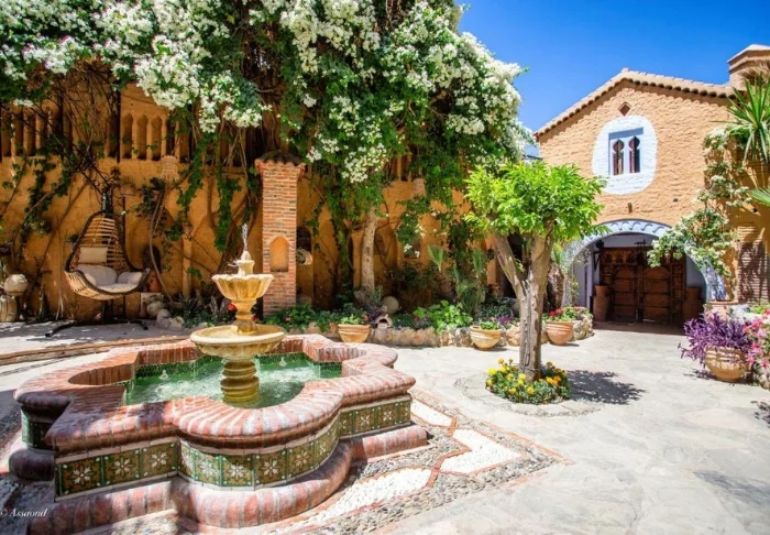 Dette trestjerners boutiquehotellet like ved Ait-Ben Haddou (som også er en “ksar” – bare en ekte en av slaget), er bygget som en liten landsby med tårn, terrasser, hager og beduintelt.