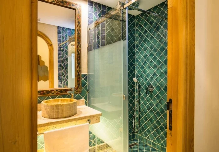 Selv om bygningen er ny, er atmosfæren som i de opprinnelige hjemmene: vakre mosaikker, utskåret treverk og rolige gårdshager – men her får du litt mer plass, litt bedre lysforhold og langt flere bekvemmeligheter.