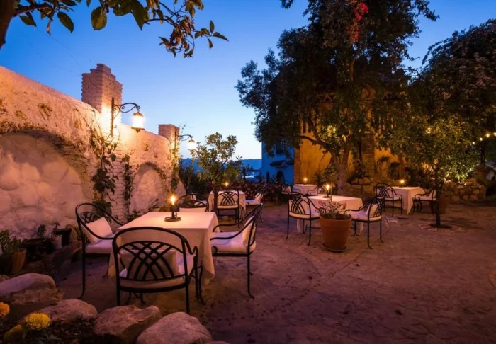 Hotellets store trekkplaster er takterrassen, hvor du har den vakreste utsikten over den blå byen. Her er det perfekt å nyte solnedgangen og deretter en god middag.