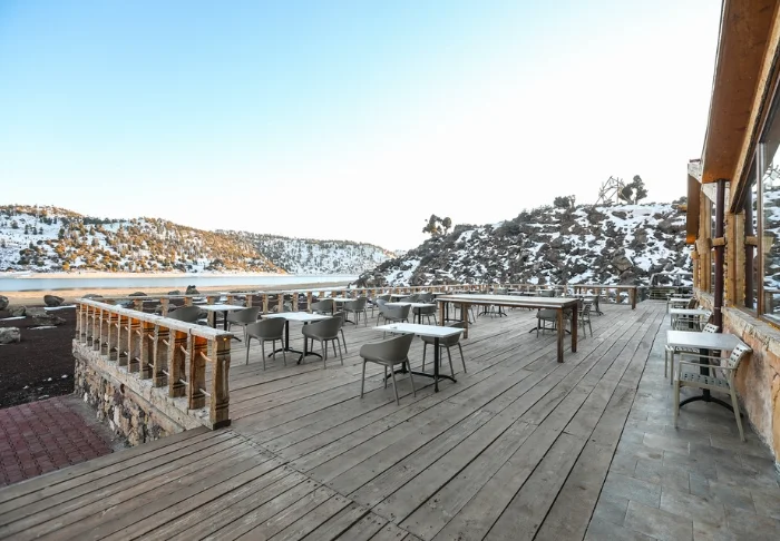 Måltidene nytes i stedets restaurant, og om kvelden tennes det opp i bålet utenfor, hvor du kan synke ned i myke puter og nyte den uendelige stjernehimmelen.