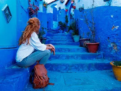 Stemningen i Chefchaouen er avslappet, og du kan lett bruke flere timer på å rusle rolig rundt i de vakre, blå gatene. Her kan du nesten la solen legge opp løpet for dagen din. Begynn for eksempel med en kopp kaffe på en takterrasse og nyt soloppgangen over Rif-fjellene. Når kvelden kommer og solen er på vei ned, kan du igjen bevege deg oppover for å få med deg de siste solstrålene over de blå gatene og byens hustak. Mange velger å gå opp til Den Spanske Moskeen, som ligger på høyden like utenfor medinaen.