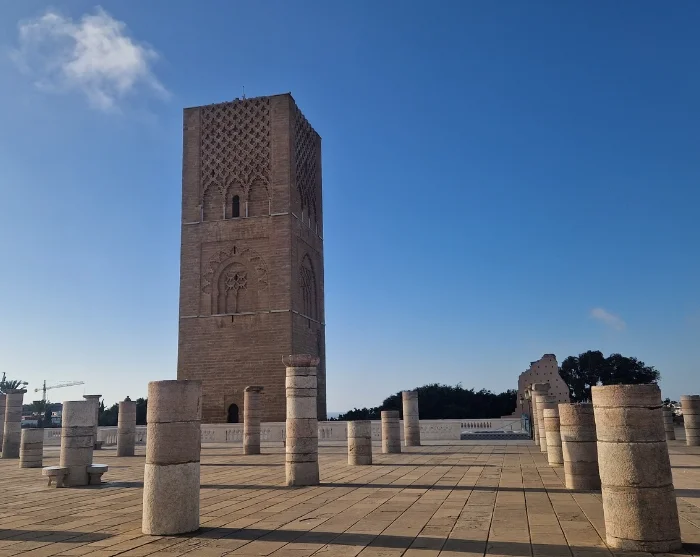 Om ettermiddagen venter en guidet byrundtur i hovedstaden, inkludert et besøk ved Hassan-tårnet. Dette tårnet er minareten til den uferdige moskeen som en gang skulle bli verdens største. Da kalif Yaqub al-Mansur døde i 1199, ble byggingen imidlertid stoppet. I dag står de store søylene og fundamentet igjen som vitner om det ambisiøse prosjektet.