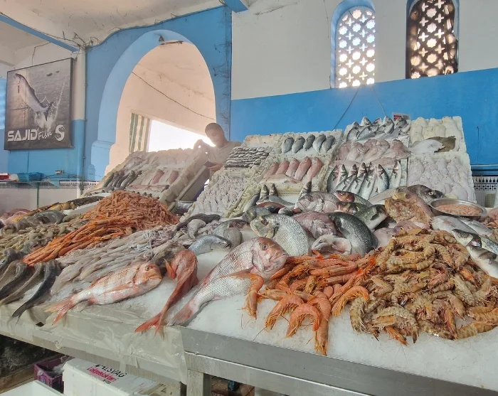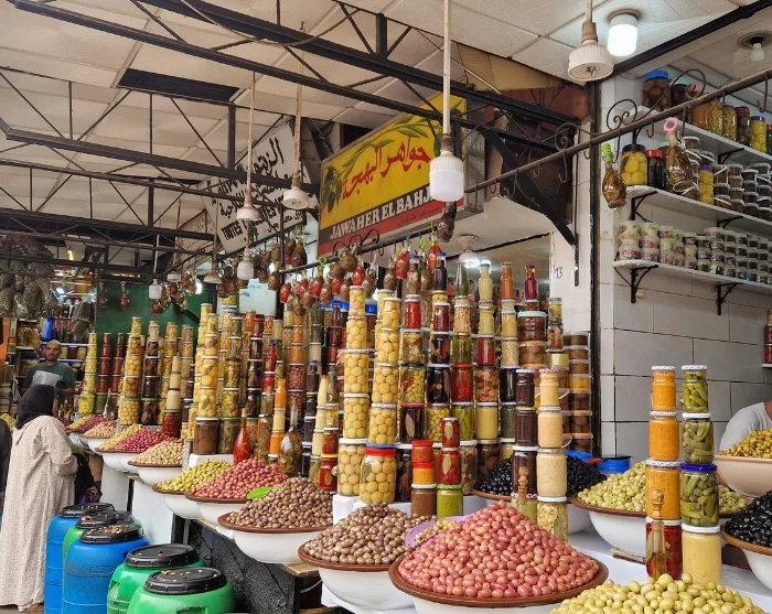 Før du setter deg godt til rette i setet, stopper dere ved et supermarked. Det er selvsagt mange måltider inkludert de neste dagene, men helt ærlig – hva er vel en roadtrip uten snacks? Derfor er dette dagens første stopp. Flere små hoteller og riader (en type gjestehus) i Marokko serverer ikke alkohol. Hvis du ønsker et glass vin eller en øl til maten de neste dagene, lønner det seg å kjøpe dette i et supermarked med godt utvalg. Nesten alle hoteller og riader tillater at du tar med egen vin og serverer den gjerne for deg. For øvrig lager Marokko utmerket vin!