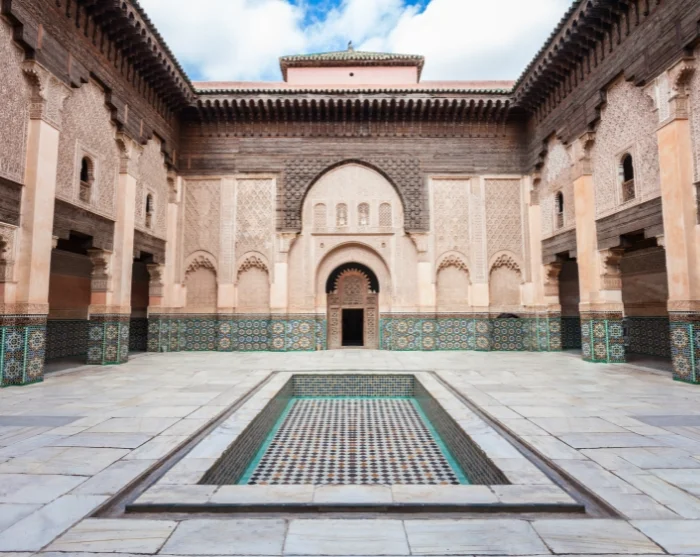 Medinaen er byens historiske sentrum. Her finner du de gamle moskeene og de tradisjonelle madrasaene. Her holder kunsthåndverkerne til, og her foregår handelen. Gatene er smale og som en labyrint, og det sies at de gamle medinaene ble bygget slik at innbyggerne lett kunne skjule seg for fienden, som garantert ville gå seg vill om de ikke selv var vokst opp innenfor medinaens murer. Du kan derimot slappe helt av – guiden kjenner medinaen som sin egen lomme, og leder deg trygt gjennom selv de mest kronglete veiene. Guiden vil ofte spørre om du har spesielle ønsker for turen gjennom medinaen, og justerer ruten deretter. Vi kan virkelig anbefale et besøk til Madrasa Ben Youssef, som med sin harmoniske oppbygning og utsøkte dekorasjoner er et arkitektonisk smykke. Den store hovedplassen i medinaen, Jemaa el-Fna, er nesten umulig å unngå. Plassen kan virke litt kjedelig på dagtid, men det er greit å vite hvor den ligger, for om kvelden forvandles den til et levende eventyr verdig en Indiana Jones-film! Her finner du ekte slangetemmere og matboder side om side med hennatatovører og juicebarer. Byens mest kjente landemerke er Koutoubia-minareten, som også er Marrakechs høyeste bygning.