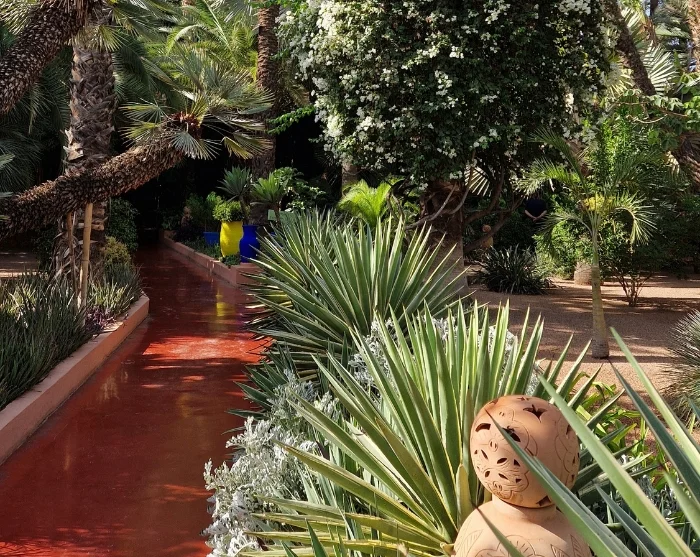 Dagen er delt i to deler: Den ene delen er en guidet omvisning i medinaen. Den andre delen er et besøk i hagen Jardin Majorelle og det tilhørende berbermuseet. Hagen er en nydelig oase midt i den hektiske byen, selv om den (må innrømmes) er ganske populær blant reisende. Berbermuseet som hører til er veldig interessant, selv om det ikke er så stort, og gir et flott innblikk i berberkulturen.