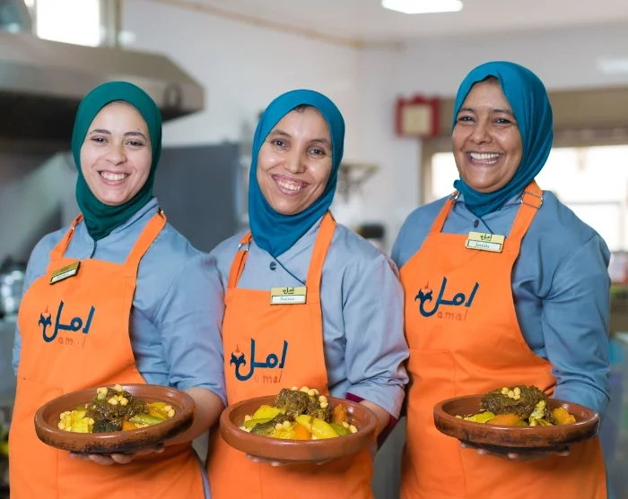 Amal Women’s Training Center er en NGO som jobber for å gi kvinner mulighet til å få en karriere innen restaurantbransjen. Derfor har de etablert en restaurant hvor menyen skifter daglig, slik at studentene får bryne seg på ulike utfordringer. Utdannede kokker veileder kvinnene, slik at de hele tiden lærer mer, og du får tilfredsstilt smaksløkene samtidig som du indirekte støtter en god sak.