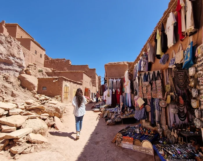 Første stopp på denne siden av fjellene er ksar Aït-Ben-Haddou, som en gang var et viktig knutepunkt på den gamle karavaneruten mellom Sahara og Marrakech. I dag er Aït-Ben-Haddou mest kjent som kulisse for en rekke filmer, og siden 1987 har byen stått på UNESCOs verdensarvliste.