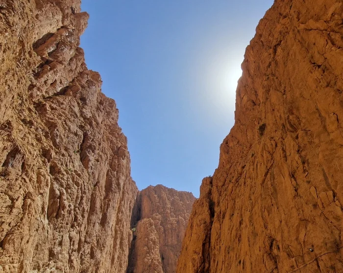 Til slutt, når du nærmer deg Tinghir, smalner dalen inn, og elven forsvinner nesten inn mellom de bratte fjellveggene. Her åpner Todra-kløften seg, og veien følger bunnen av den trange dalen, hvor sollyset kun når helt ned noen få timer hver dag. Du forlater bilen og rusler det siste stykket helt inn i hjertet av kløften. Det klare vannet renner i elven ved siden av veien, og på en varm dag er det fristende å dyppe tærne i vannet.