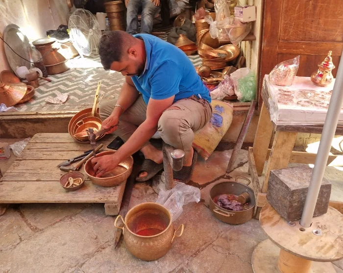 Medinaen i Fes er enorm. Det sies at det finnes over 9 000 gater i den gamle byen. Den ble grunnlagt i år 789 og vokste gjennom århundrene til å huse tusenvis av mennesker, håndverkere og handelsfolk. Gatene slynger seg som et labyrintisk nettverk, delt inn etter håndverk og yrker – fra teppeverksteder og smier til de ikoniske garveriene. Her jobber håndverkerne med skinn på tradisjonelt vis, og de fargerike karene der de bearbeider de mange skinnene, er virkelig en opplevelse for alle sansene.
