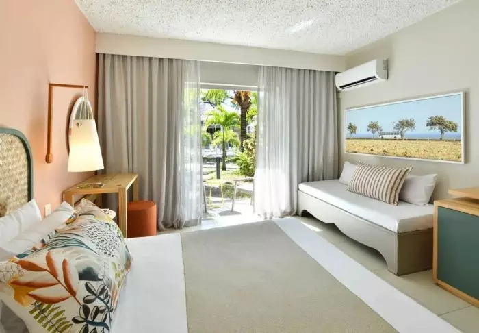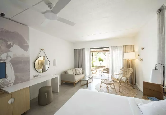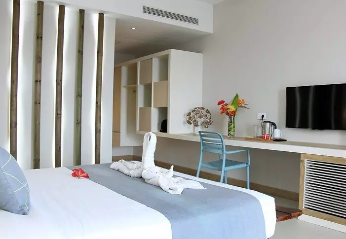 «Prestige»-rommene i den sørlige fløyen er fargerikt innredet med masse personlighet, mens de litt større «Deluxe»-rommene i den nordlige fløyen er litt mer dempet og litt mer luksuriøse. All inclusive-konseptet inkluderer en minibar på rommet, som fylles opp daglig med øl, brus og vin (hvis ønskelig) samt alle dagens måltider. Også på matfronten skiller C Mauritius seg ut (positivt, hvis du spør oss) ved at du for eksempel kan hente maten og en kald øl i hotellets selvbetjente restaurant og ta den med ned til stranden, eller nyte den på balkongen, uten å måtte si fra om endringen og vente på at en servitør skal komme med maten – med mindre du har lyst, for det er selvsagt også et alternativ!