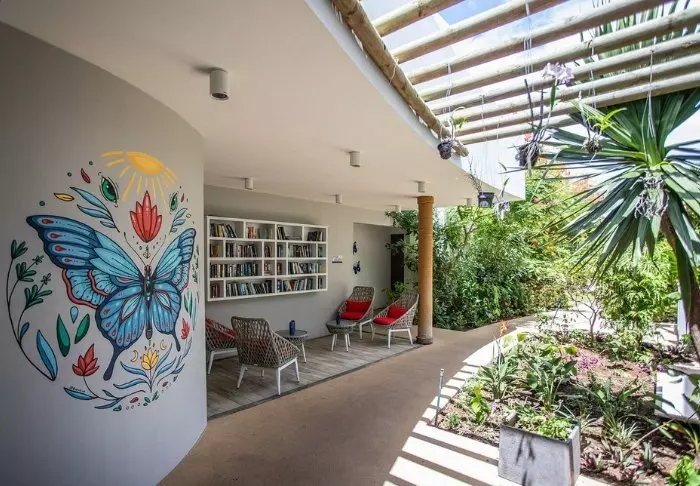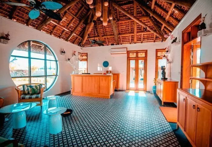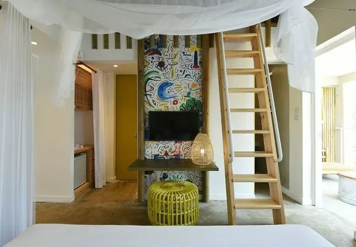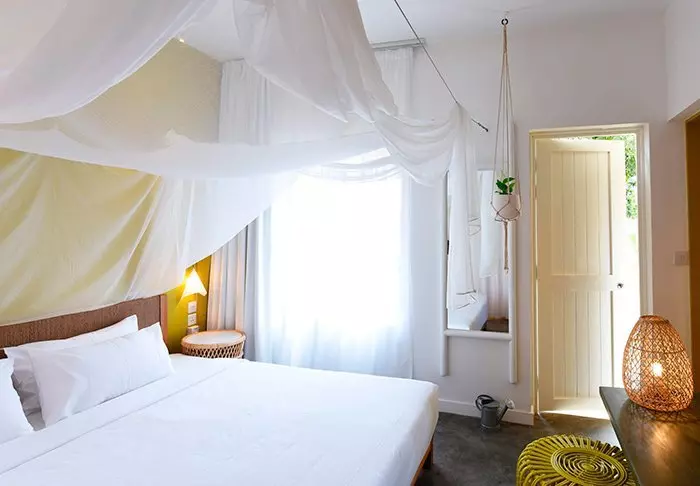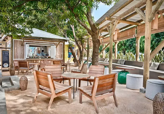 Her er det ingen høye vegger eller elektriske porter. I stedet finner du hengekøyer, sand på gulvet i lobbyen og en koselig, sjarmerende og intim atmosfære.