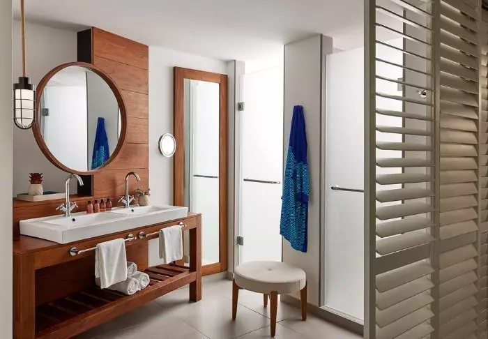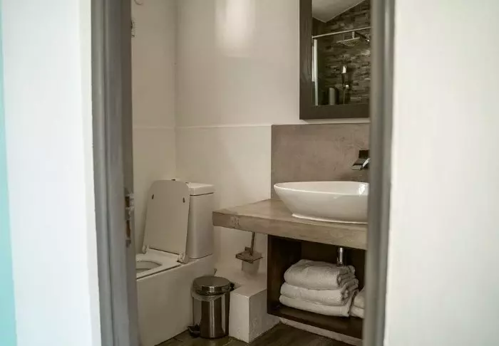 De store badene har separat dusj med glassdører, badekar og toalett. Det er også hårføner, uttak til barbermaskin samt walk-in garderobe.