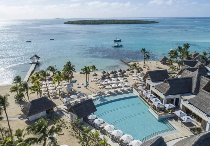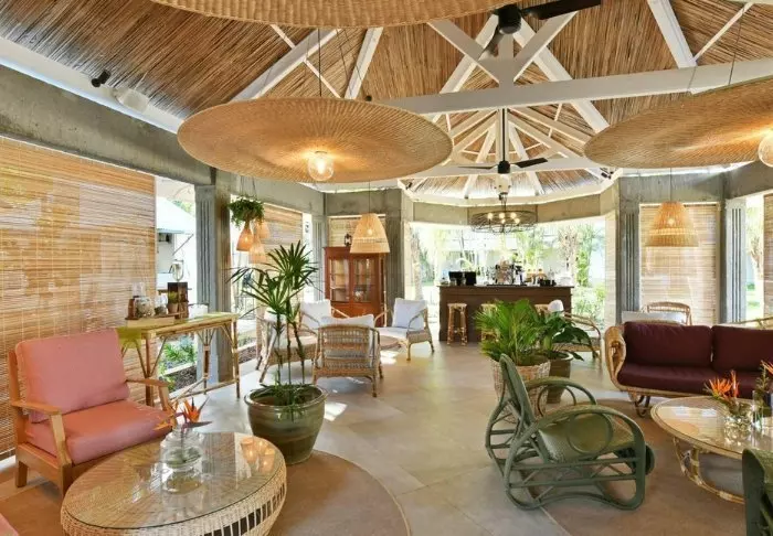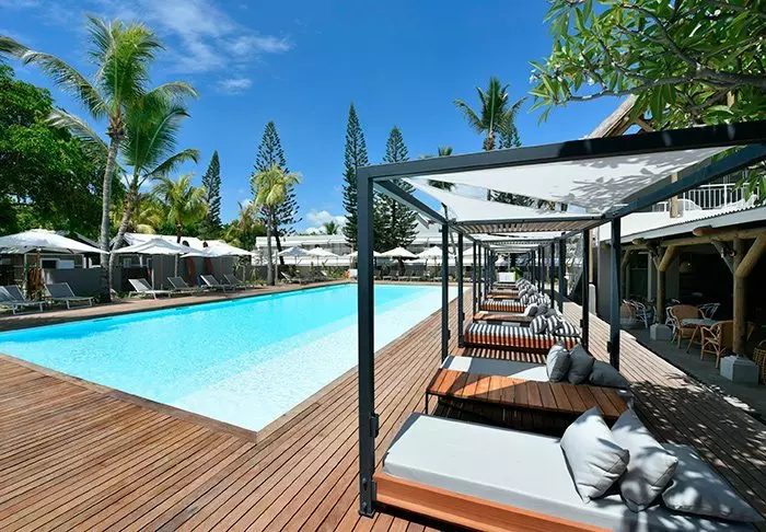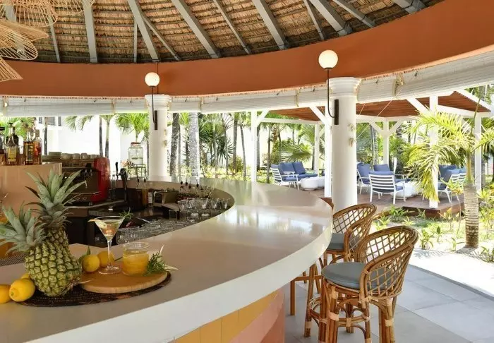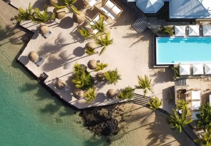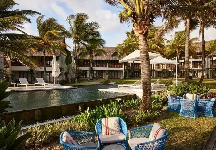 Hotellet i seg selv er veldig sjarmerende, og er laget i moderne kolonistil. Grønne planter, treskodder, bambusmøbler og duse farger kjennetegner interiøret i både lobbyen og restauranten. Det lange evighetsbassenget ligger midt på resorten, mens den herlige strandbaren og restauranten har utsikt over stranden og bukta. Like nedenfor strandbaren finner du «båthuset», der du kan låne kajakker eller padlebrett. Herfra kan du også hoppe på en gratis vanntaxi som tar deg inn til sentrum av Grand Baie. Med full mage – eller fulle handleposer – kan du enkelt spasere tilbake til hotellet på mindre enn 15 minutter.