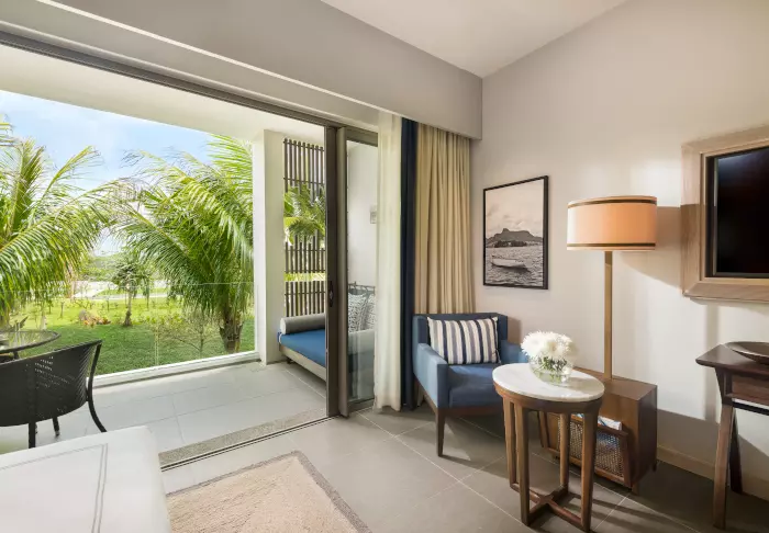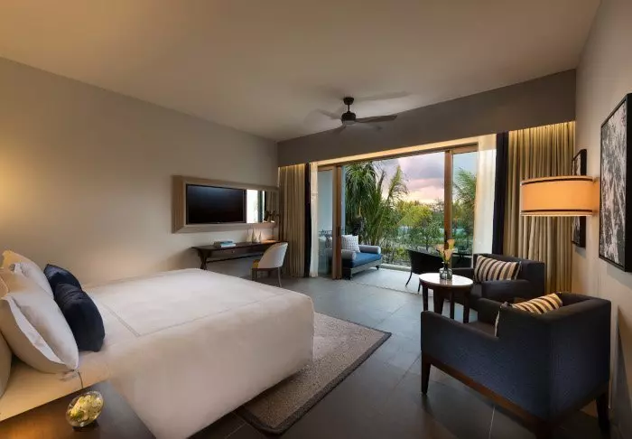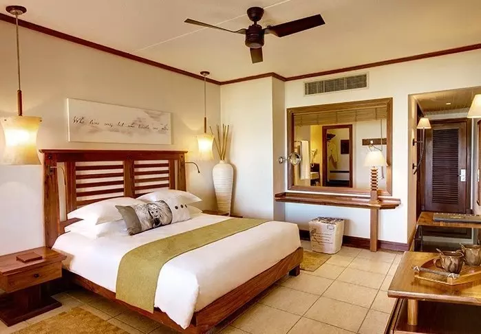 Rommene er fine, store og innredet i mauritisk og asiatisk stil. De har enten balkong eller terrasse. Alle rom vender ut mot havet og har aircondition, minibar, te- og kaffefasiliteter, flatskjerms-TV – og alt det du ellers forventer av en femstjerners resort. Det er gratis Wi-Fi på hele hotellet.