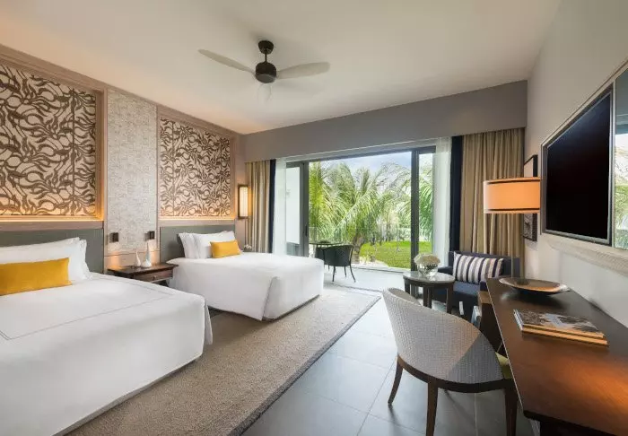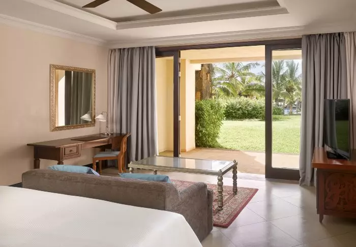 Her er det 261 rom, som alle har utsikt over enten havet eller de store tropiske hagene rundt hotellet. Alle rommene har egen balkong eller terrasse, samt airconditioning, TV og minibar.