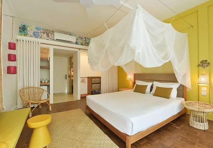 Hotellet har 116 rom, som alle har eget bad, aircondition, vannkoker til kaffe/te, minibar og gratis Wi-Fi. Rommene er veldig sjarmerende, og med fine farger, og er både innbydende, moderne og retro på samme tid. Alle rommene har egen balkong eller terrasse, Hvert rom er også utstyrt med et “strandsett” som består av en kurv med håndklær og strandmatter, og til og med din egen kjølebag.