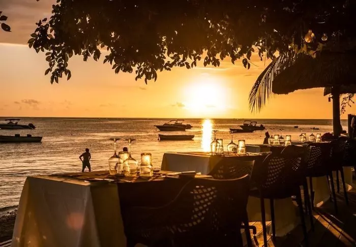 Forestill deg at du sitter ved et vakkert dekket bord med føttene i sanden. Om litt kommer kelneren med kveldens meny. Foran deg står en kjølig drink, så kald at det dannes små perler på glasset. Bølgene skvulper mot stranden, og du har utsikt til en fantastisk solnedgang.