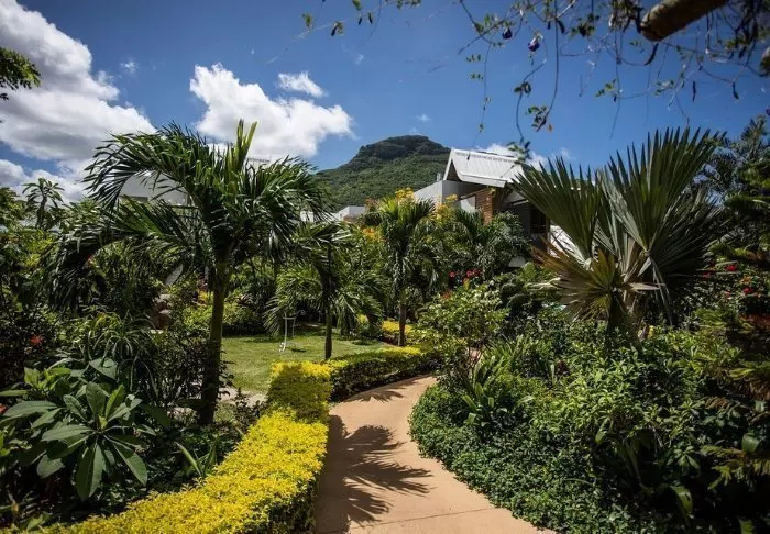 Rommene ligger i små bungalower, som er plassert bak fellesområdene. Her kan du nyte utsikten over de frodige hagene – og det er så stille og fredelig at det er vanskelig å forestille seg at du bare er noen få minutters gange fra sentrum av Grand Baie!