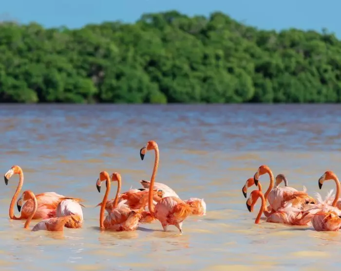 Ved ankomst i Celestun skal du ut på en opplevelsesrik båttur i nasjonalparken. Den er kjent for sine mangrovetrær og imponerende fuglebestand. Store deler av året kan du se flokker av fascinerende rosa flamingoer, som sammen med massevis av andre eksotiske fugler har sitt hjemsted her. Det er generelt et rikt dyreliv i Celestun, så her gjelder det å holde øynene åpne – kanskje du er så heldig å få øye på en krokodille underveis. Båtturen varer i ca. halvannen time, og guiden forteller mye interessant om området.