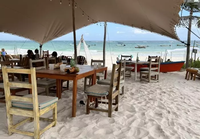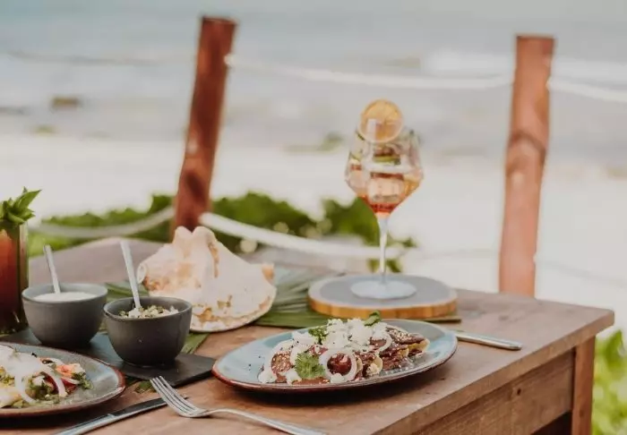 Hotellet har en strandbar der du kan nyte kalde drikkevarer eller snacks og sin egen mexicanske open-air-restaurant, der du sitter med føttene i sanden og utsikt over havet. Her serveres din inkluderte frokost, og senere på dagen er det lunsjretter på menyen. I høysesongen serverer restauranten også middag. Som gjest kan du også spise middag på en av restaurantene i nærheten. De har både fisk og skalldyr, mexicanske- og internasjonale retter på menyen. Du kan også dra inn til Tulum by hvis du vil ha et større utvalg restauranter og barer.
