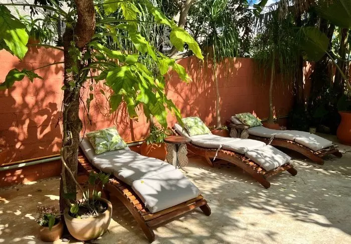 Når du trenger en pause etter en begivenhetsrik dag, kan du slappe av i en solseng i den frodige bakgården eller ta med en bok opp til en av takterrassene og slappe av i en av de heklede hengekøyene. Det er to små bassenger på hotellet: ett under åpen himmel, og et annet som er under tak.
